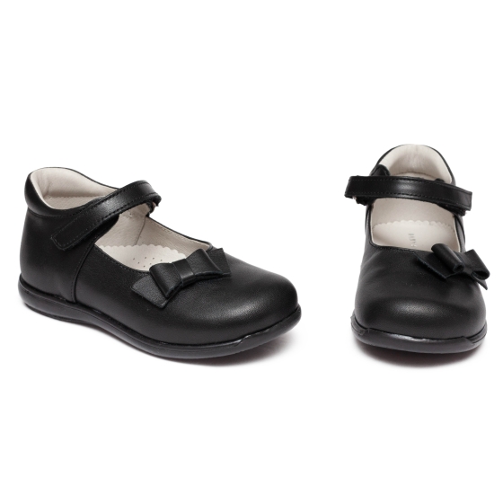 Pantofi balerini fete din piele cu talonet 803 negru funda 19-30