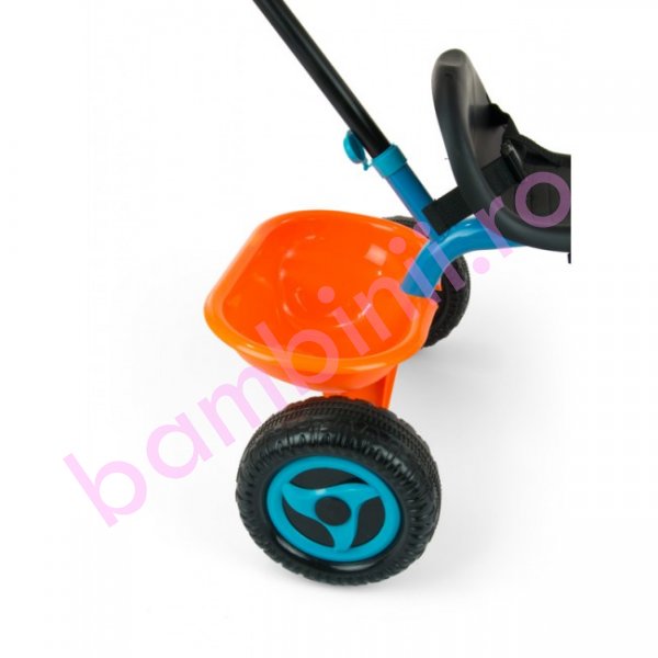 - Prevazuta cu maner de extensie din spate, astfel parintele avand posibilitatea de a controla directia de mers.
