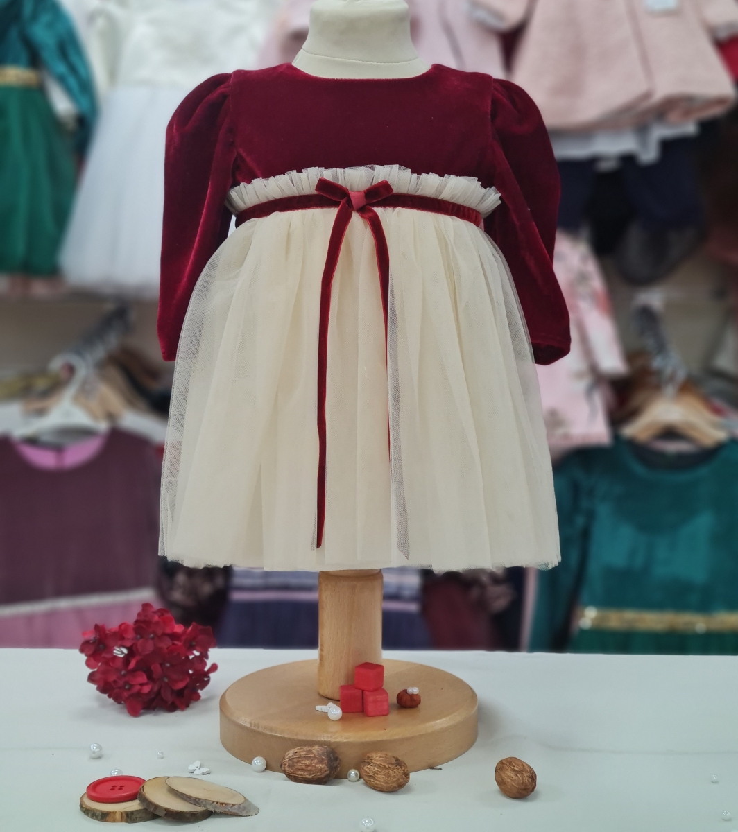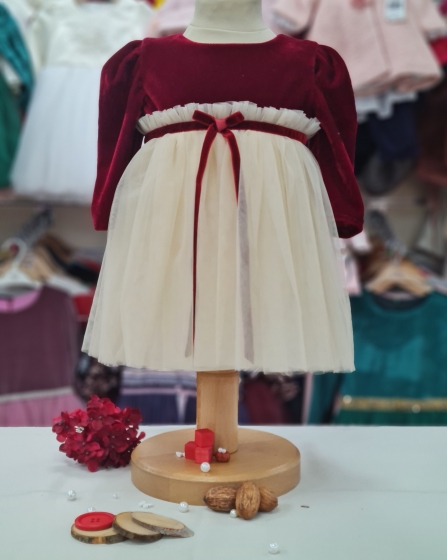 Descriere Rochita botez fete din catifea 2116 grena bej 2luni-12ani
