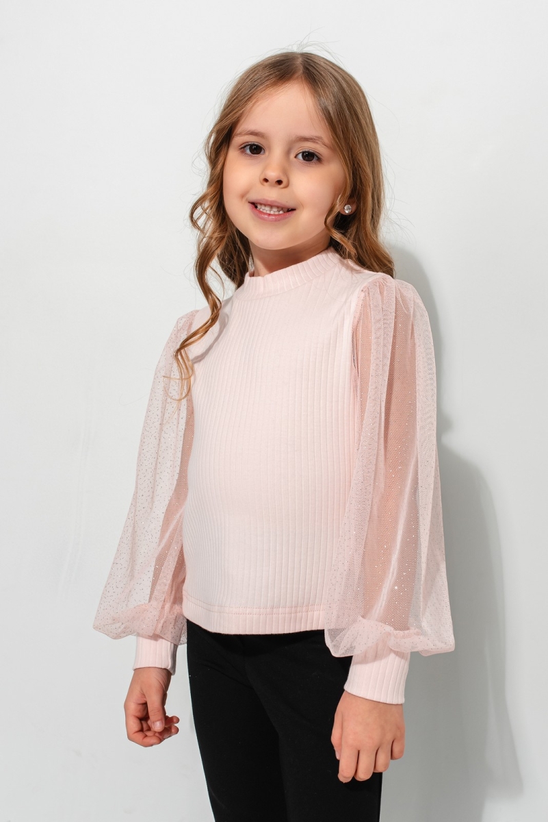 - Mâneca fixată are manșetă, cu partea superioară din plasă, strânsă la încheietură și tiv, și manșetă tricotată.