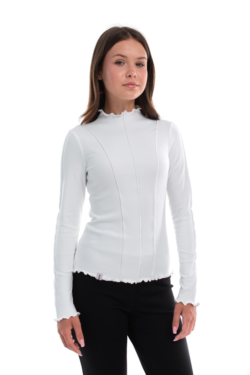 - Jumătatea din față a bluzei este decorată cu reliefuri încrucișate pe față cu o cusătură de diurnă.