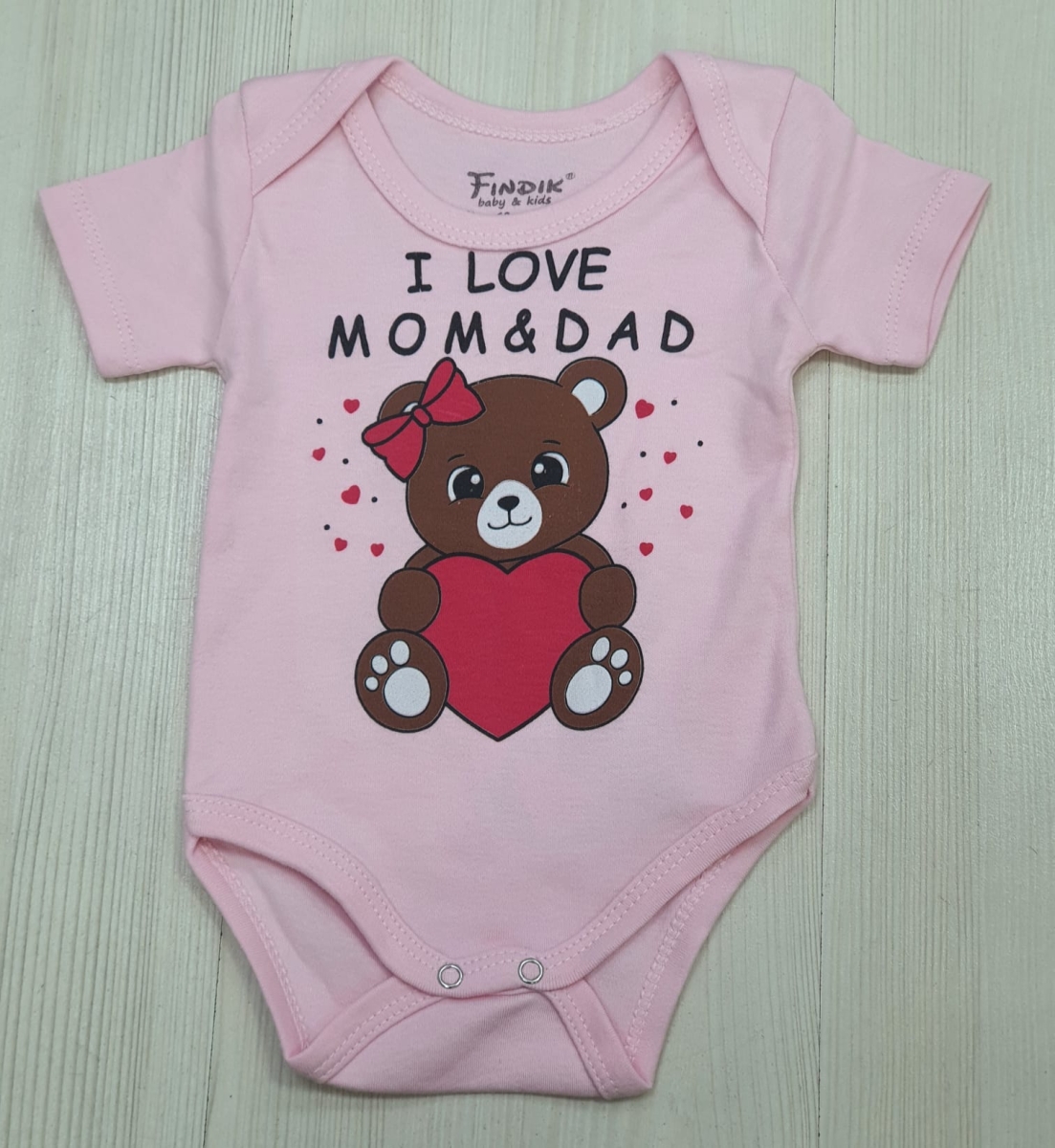 Descriere Body fete cu maneca scurta I Love Mom & Dad 3242 roz 1luna-2ani