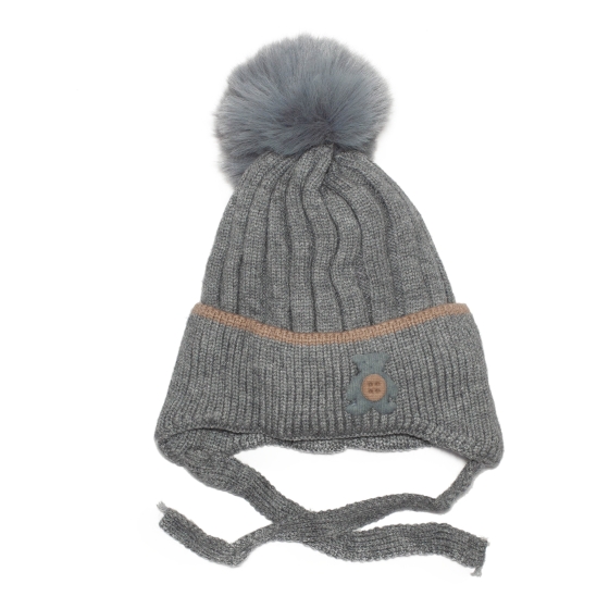 Caciula baieti groasa de iarna cu legaturi 3345 gri 1-2ani