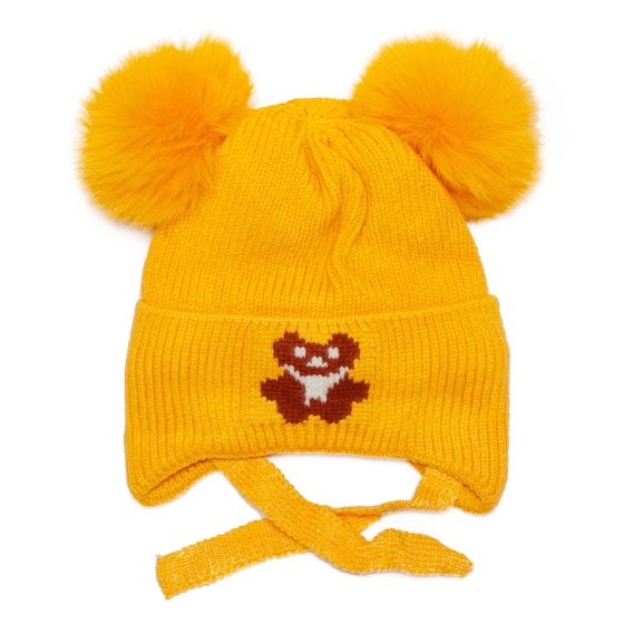 Caciula copii groasa de iarna cu legaturi si 2 ciucuri 3137 galben 1-3ani