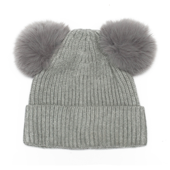 Caciula copii groasa de iarna cu legaturi si 2 ciucuri 3137 gri 1-3ani