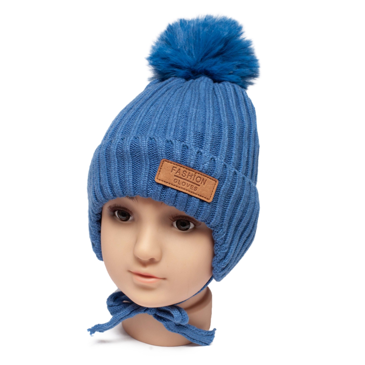Caciuli fesuri cagule copii iarna - Caciula baieti groasa de iarna cu legaturi 3348 albastru 6luni-1an