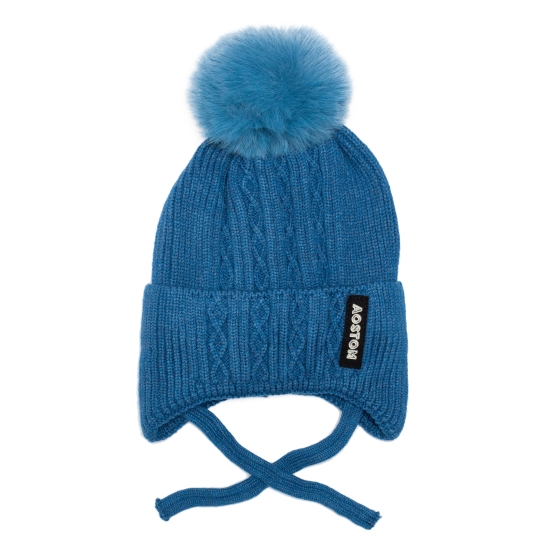 Descriere Caciula baieti groasa de iarna cu legaturi si 2 ciucuri 3347 albastru 2-4ani