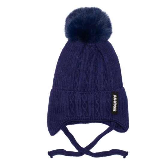 Descriere Caciula baieti groasa de iarna cu legaturi si 2 ciucuri 3347 blu 2-4ani