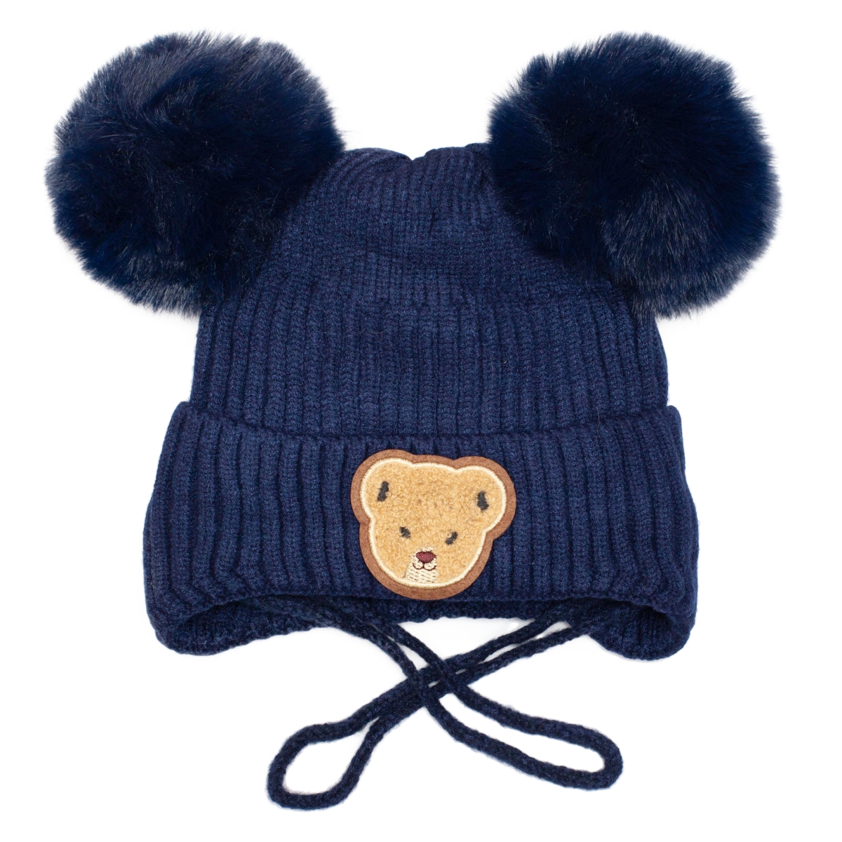 Caciuli fesuri cagule copii iarna - Caciuli groase baieti cu 2 ciucuri 3343 blu 1-3ani