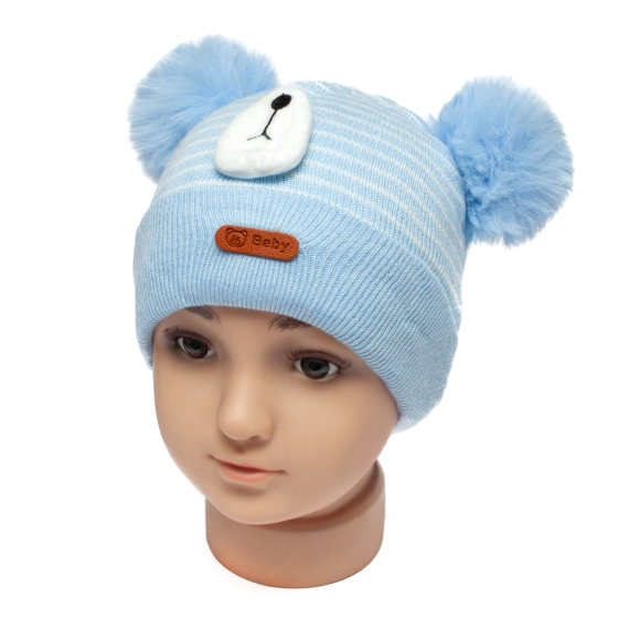 Fes baieti de iarna cu 2 ciucuri 3140 albastru 6luni-2ani