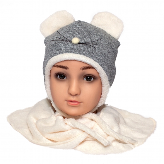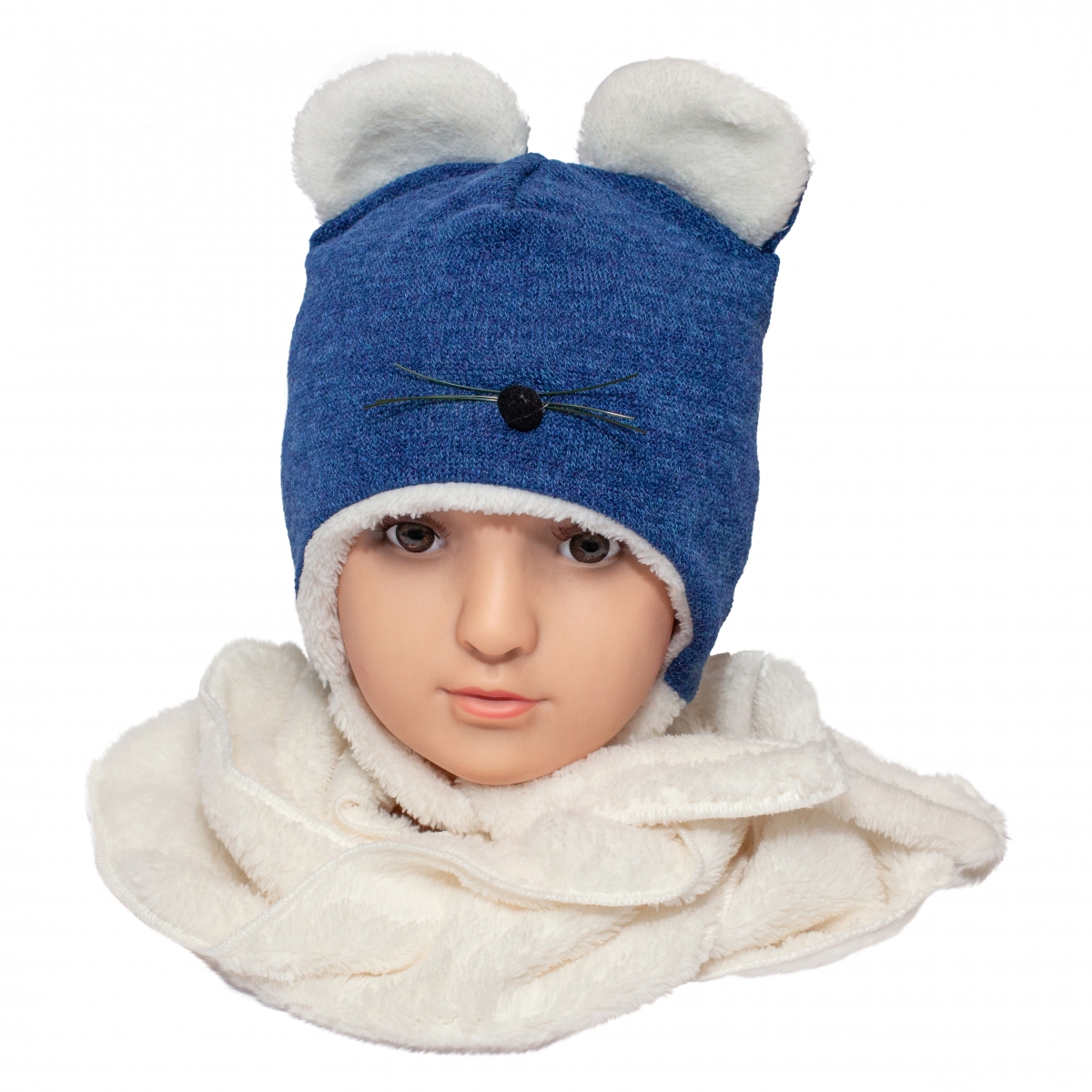 Descriere Set caciula cu fular copii soricel TR5 albastru 40-44cm