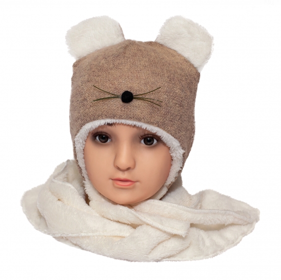 Caciuli fesuri cagule copii iarna - Set caciula cu fular copii soricel TR5 albastru 40-44cm