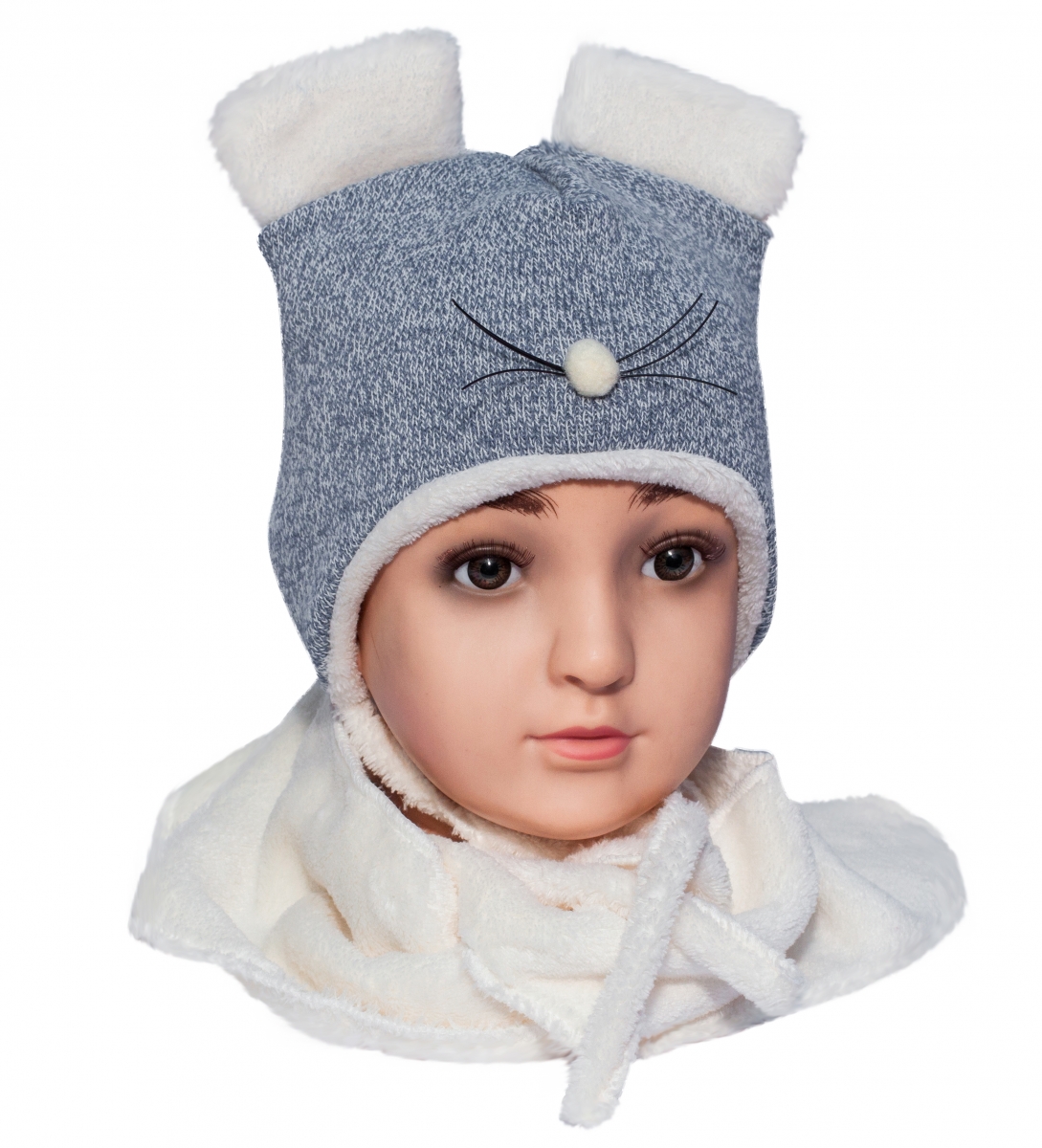 Caciuli fesuri cagule copii iarna - Set caciula cu fular copii soricel TR5 gri 40-44cm