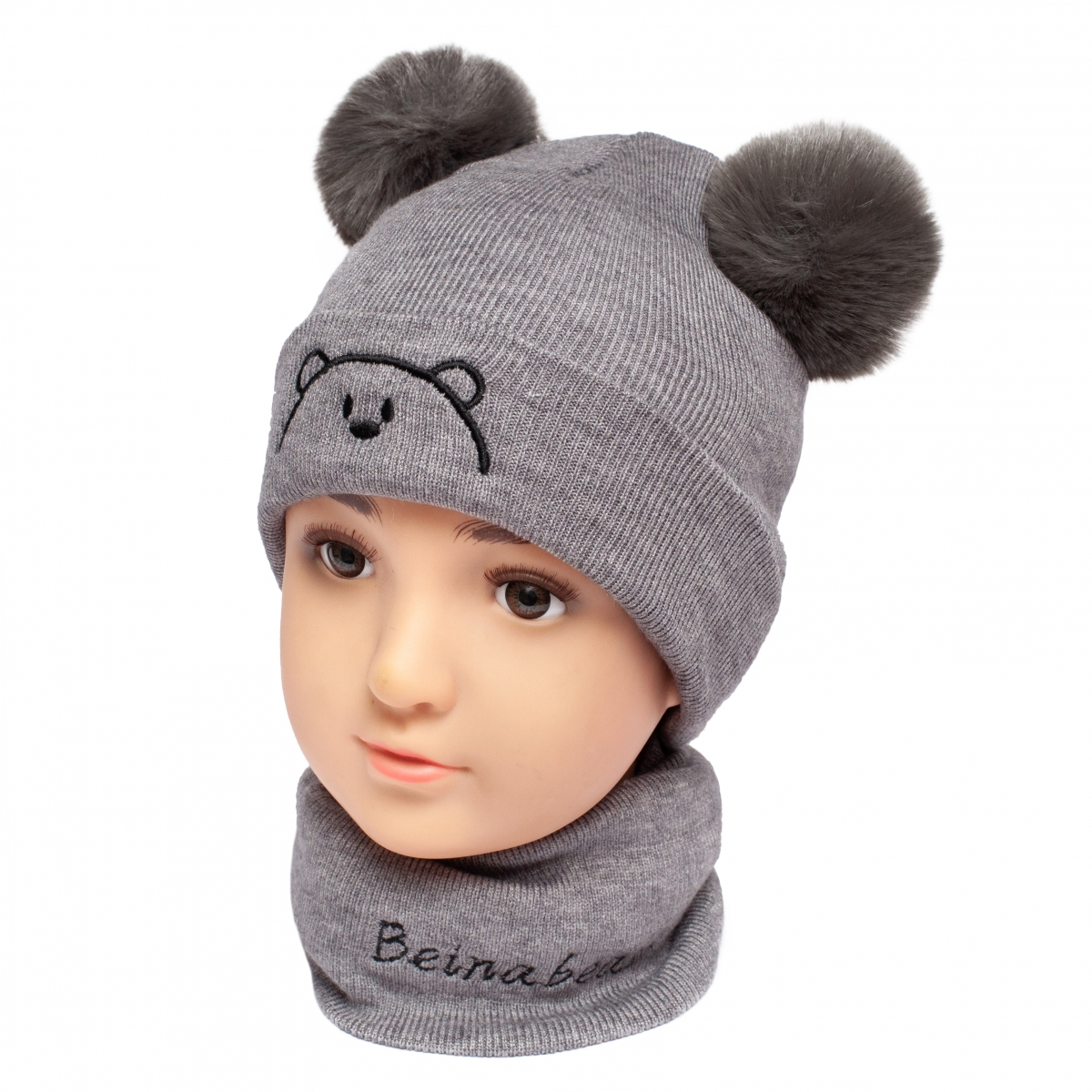 Descriere Set caciula si fular copii 1865 gri 1-3ani