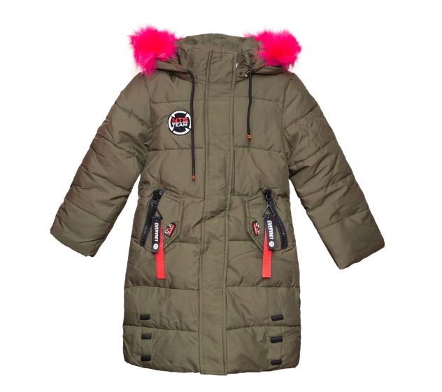 Geci fete lungi groase de iarna 1157 kaki fuxia 110-140cm