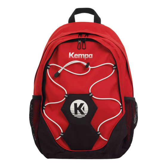 Rucsac Kempa cu 2 compartimente cu fermoar si plasa pentru minge sau alte accesorii .