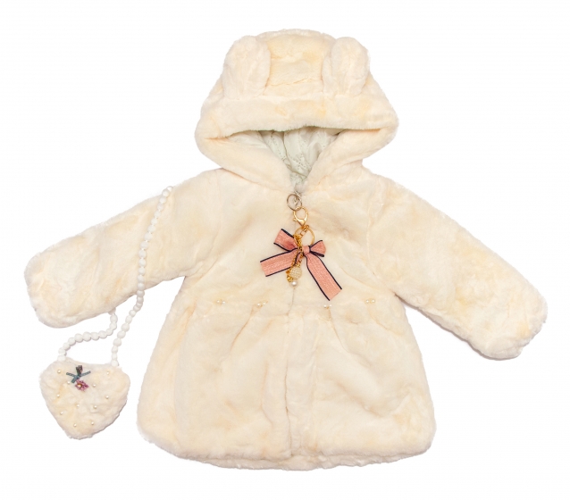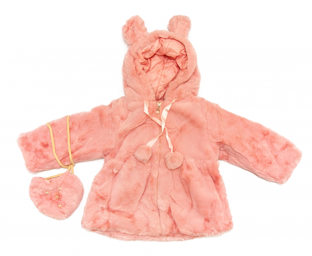 Jachete-paltoane-sacouri copii - Hainuta din blana cu gluga si gentuta 2526 roz 1-4ani