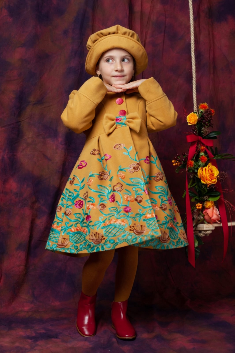 Paltoane fete cu palarie brodat Andreea tex galben mustar 1an-10ani