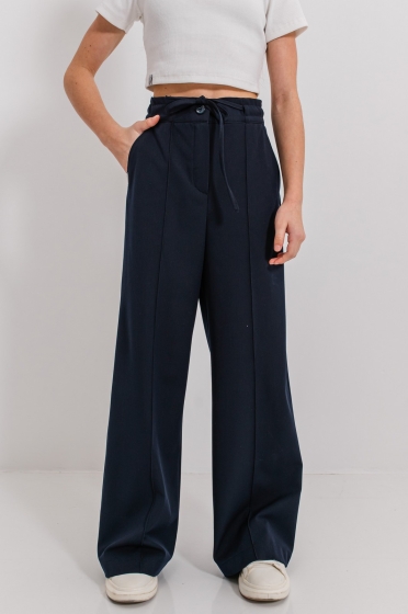 - Pantalonii au talie elastică, partea din față fiind decorată cu două cusături decorative.