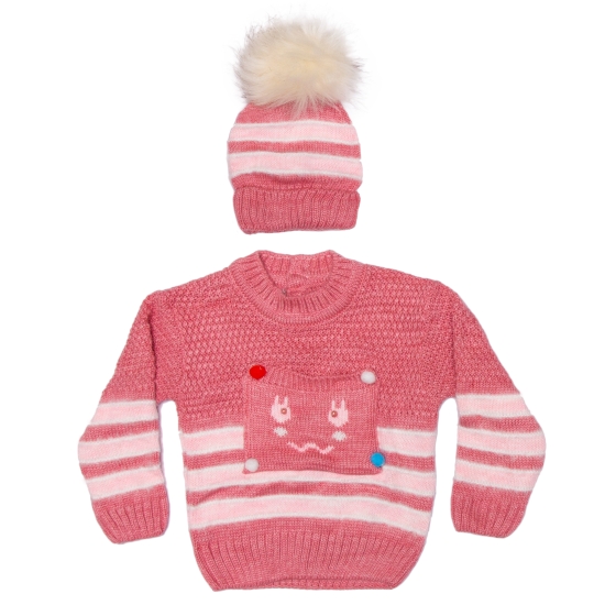 Pulovere copii - Pulover fete cu fes cadou 3049 roz 2-6ani