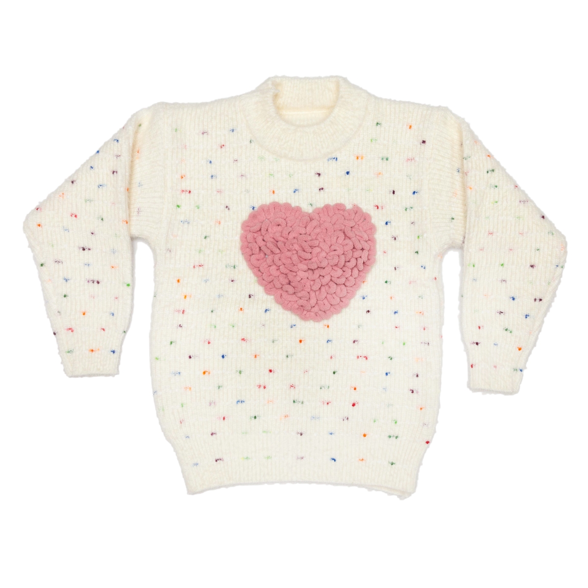 Pulover fete moale si gros 3368 alb inima 2-15ani