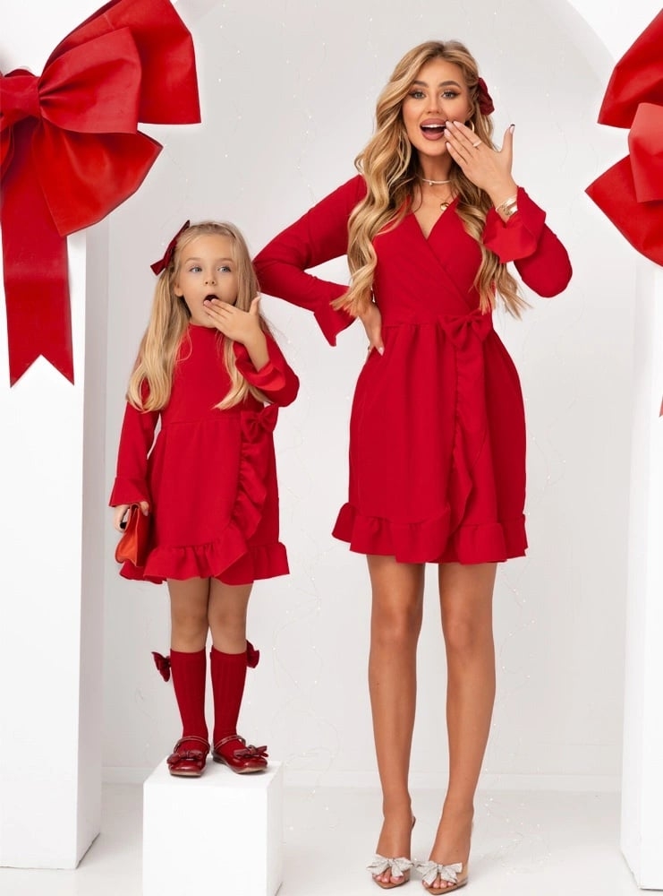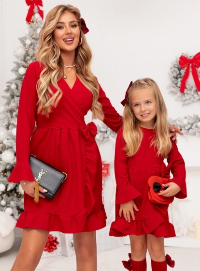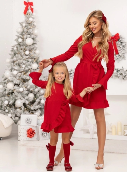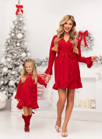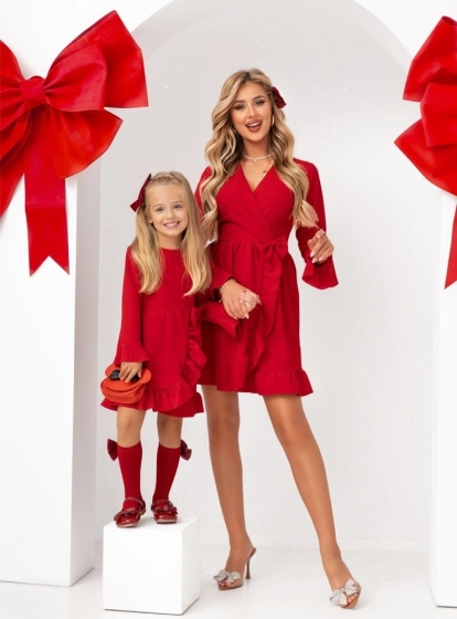 Rochie fete barbie mama fiica 3328 rosu 1an-L