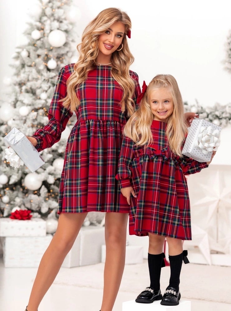 Rochie fete in carouri Craciun mama fiica 3329 carori 1an-L