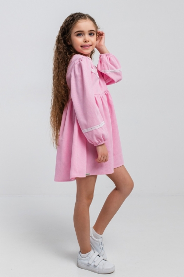 Rochiță fete elegantă Suzie Helen pink (116–134 cm), cu croială lejeră și detalii delicate din dantelă. Această rochie copii roz este ideală ca rochie fete ocazie, oferind confort și stil. Parte din colecția rochii fete .