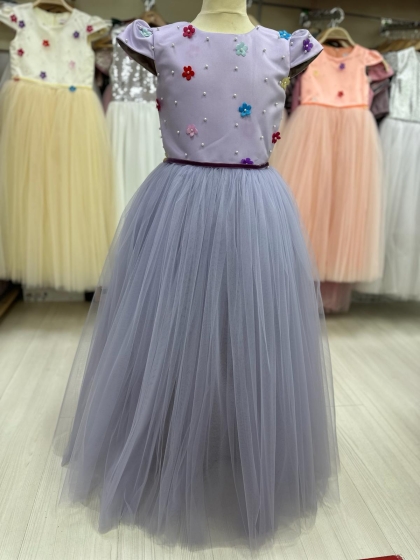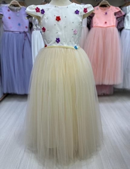 Rochite fete lungi elegante 3185 bej flori 3luni-14ani