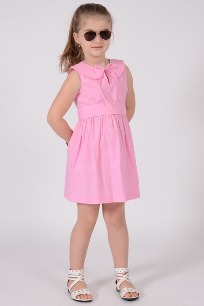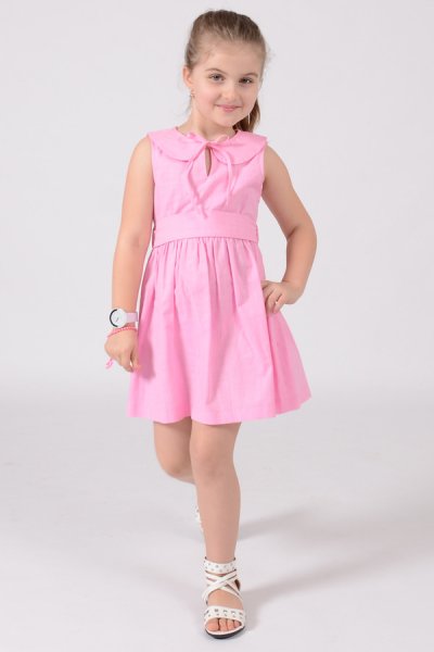 Descriere Rochie fete roz cu guler si cordon 1474 3-10ani