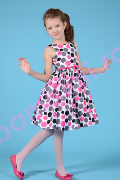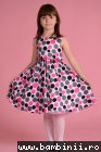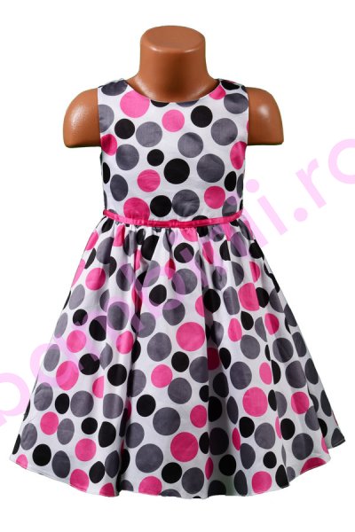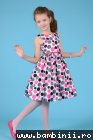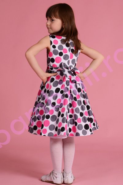 - Rochii fete cu buline multicolore, elegante din bumbac 100 % , captusita integral atat la bust cat si la partea inferioara si are un volan din Tull incretit aplicat pe fusta din captuseala.