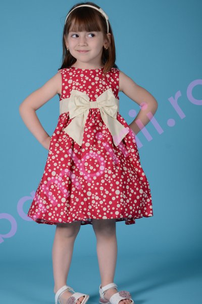 - Rochii fete cu buline, elegante din bumbac 100 % , captusita integral atat la bust cat si la partea inferioara si are un volan din Tull incretit aplicat pe fusta din captuseala.