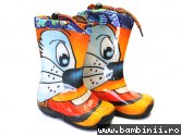 Cizme copii cauciuc cu blana iarna 4 blu galben melc 24-39