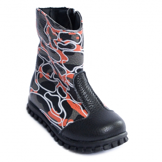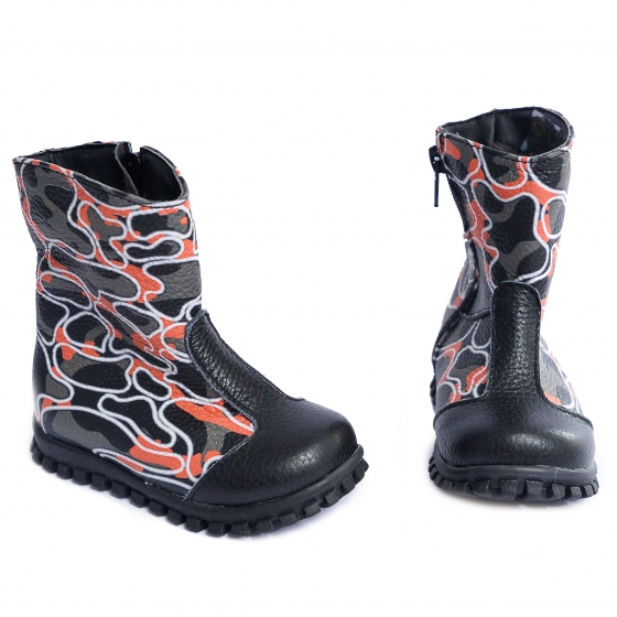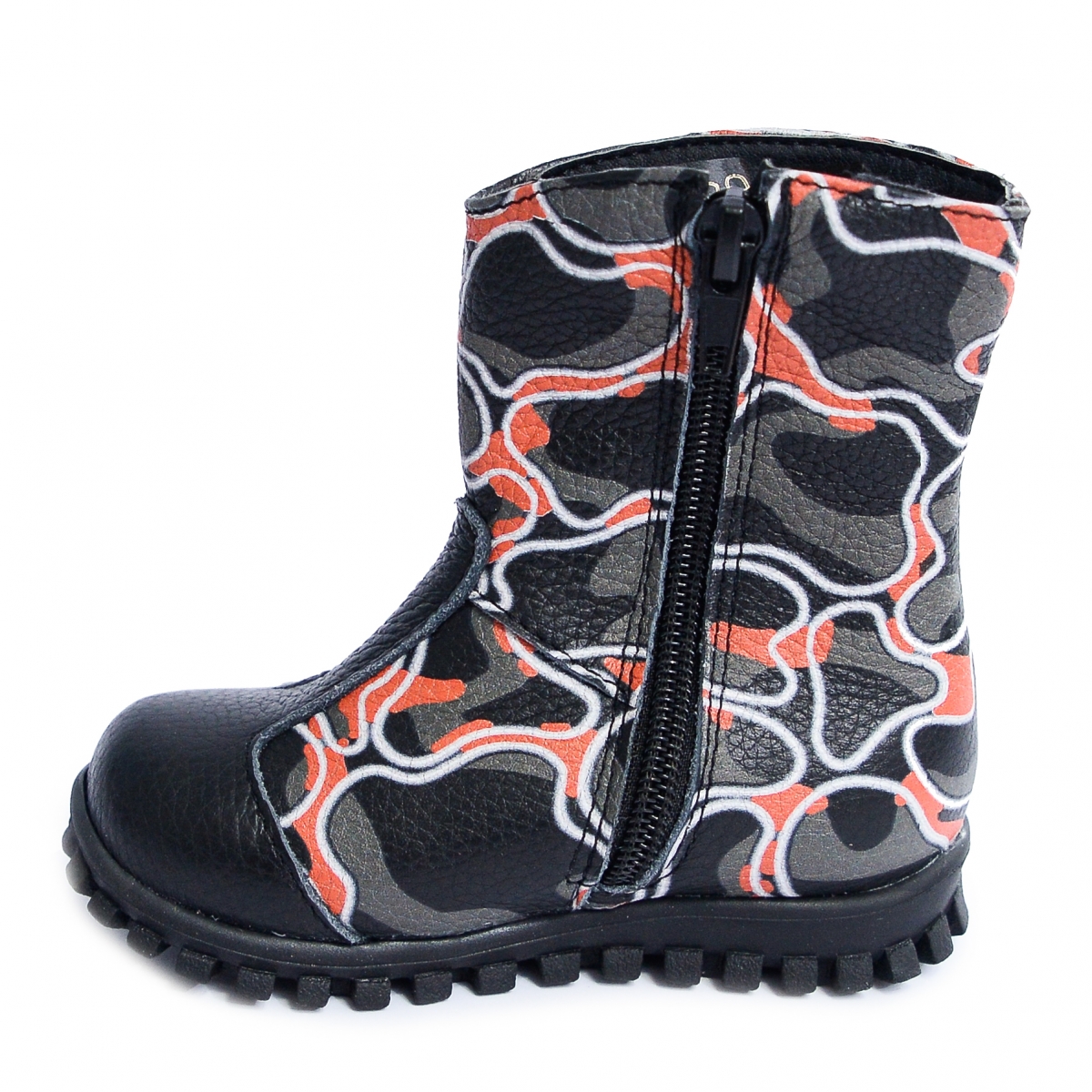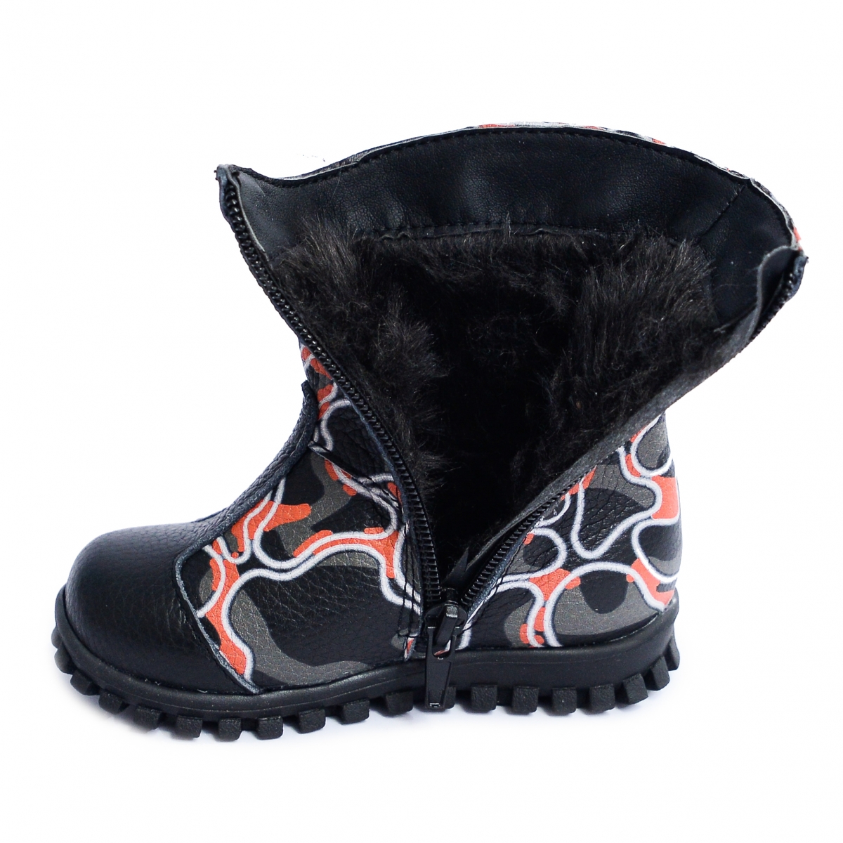 Cizme copii din piele cu blana 517 negru gri port 20-25