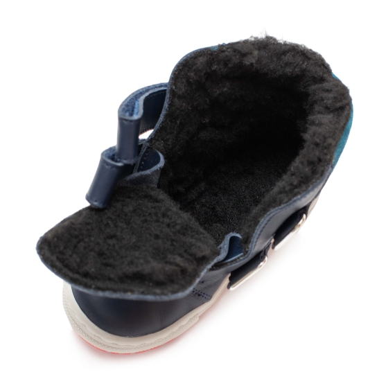 Ghete copii din piele naturala exterior , blanita la interior si pe talpa , cu talonet .