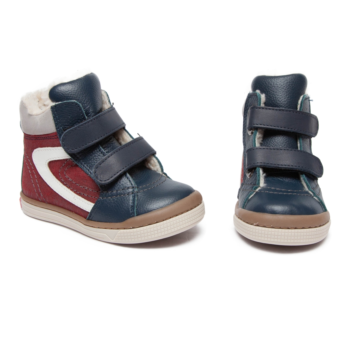 Ghete copii cu talonet din piele cu blana 755 blu bordo 19-30
