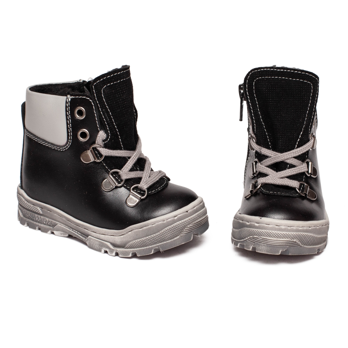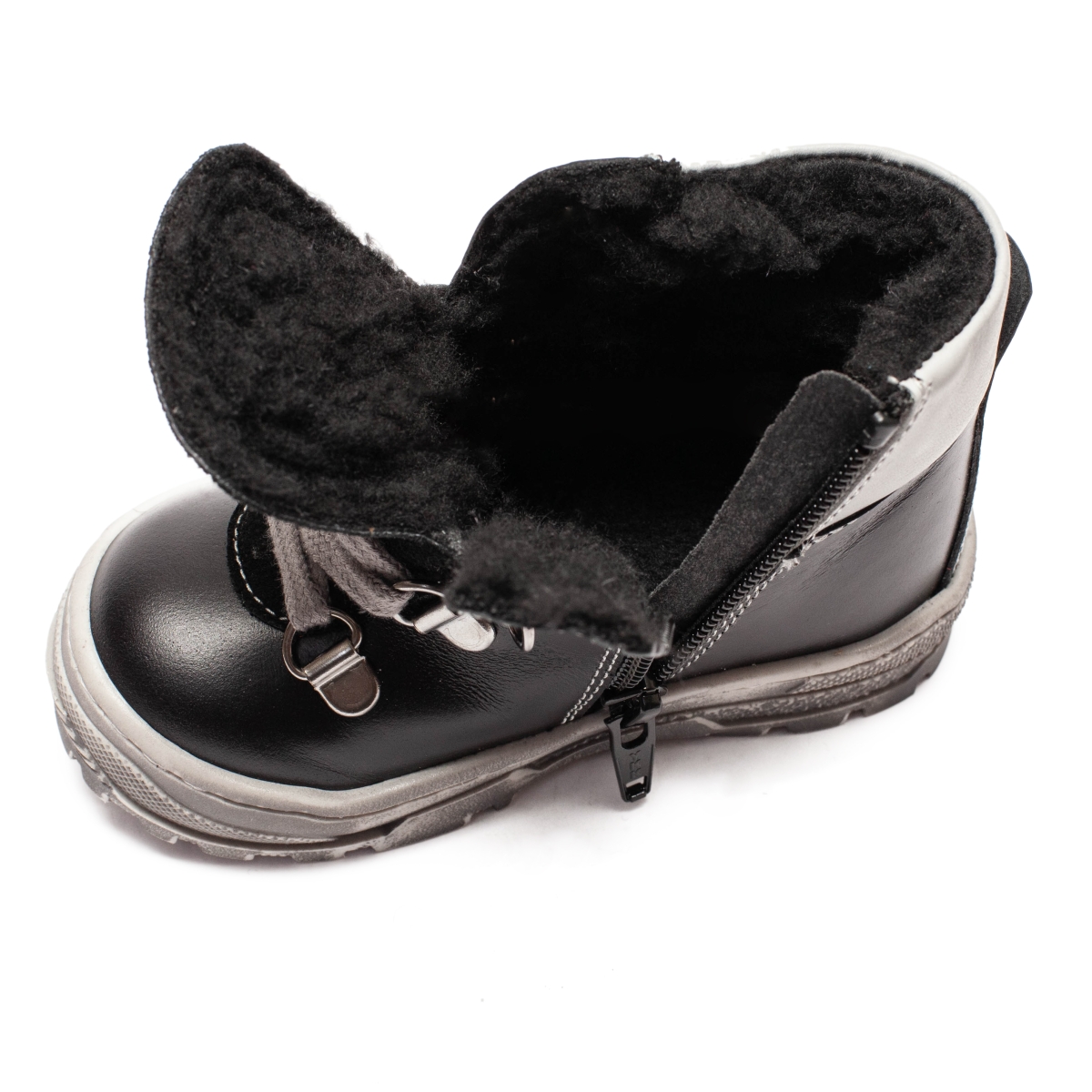 Ghete copii din piele cu blana cu talonet hokide 365 negru g 19-25