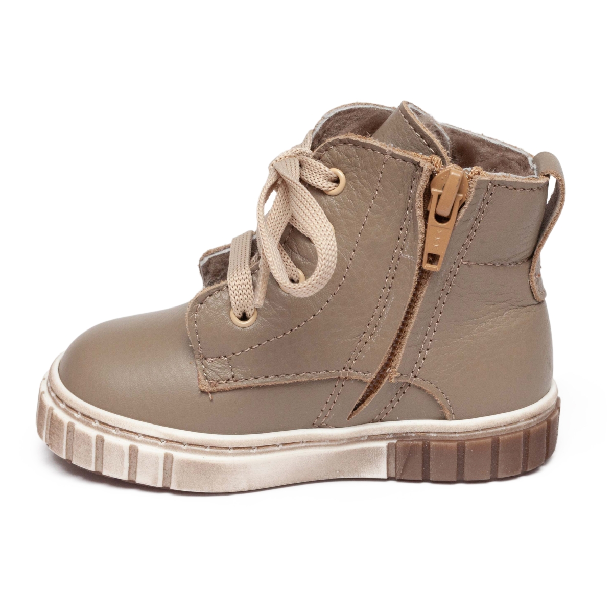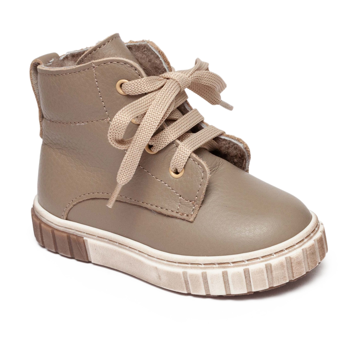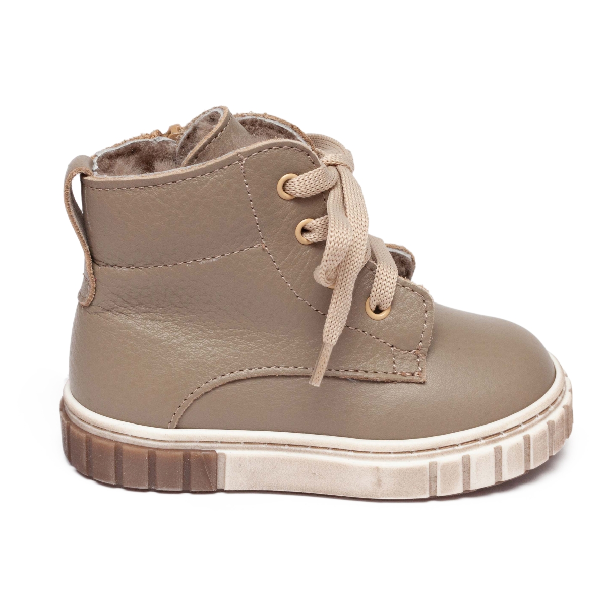 Ghete copii din piele naturala exterior si blanita naturala la interior si pe talpa , cu talonet .