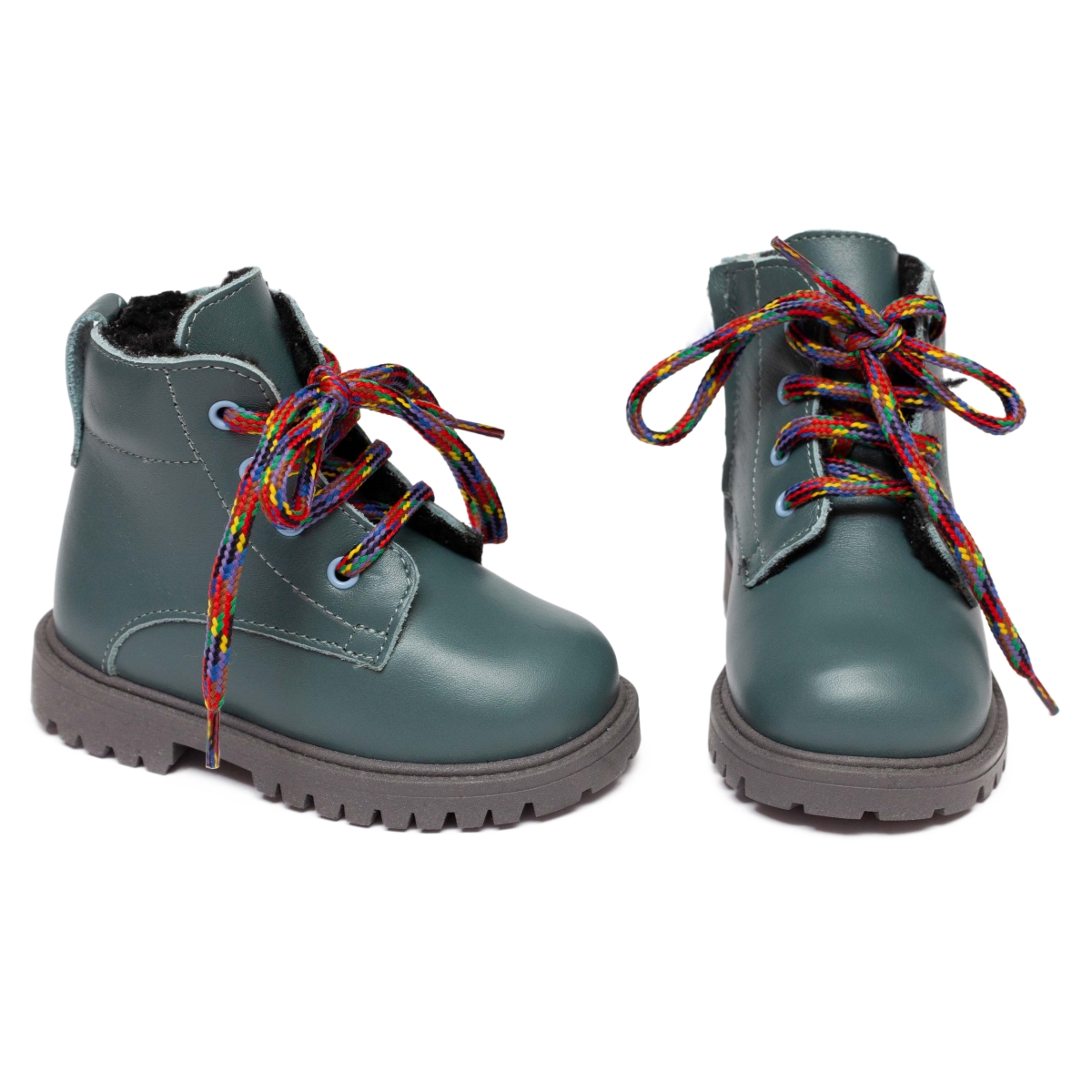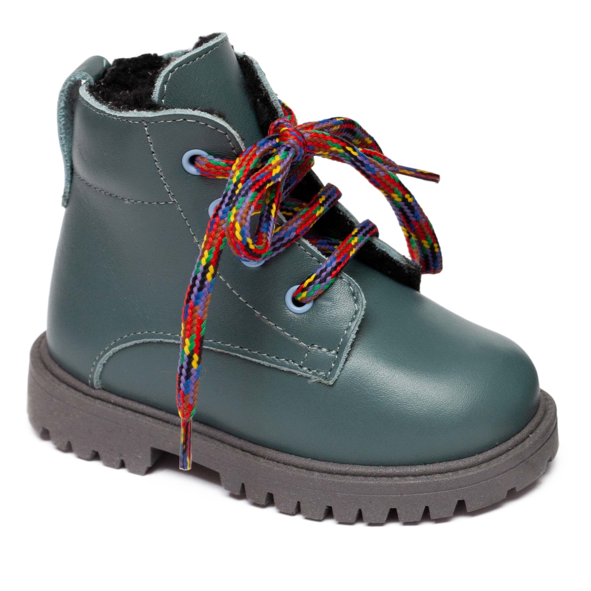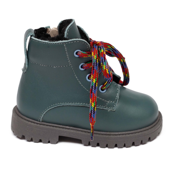 Ghete copii din piele cu blana si talonet AV413 petrol color 19-30