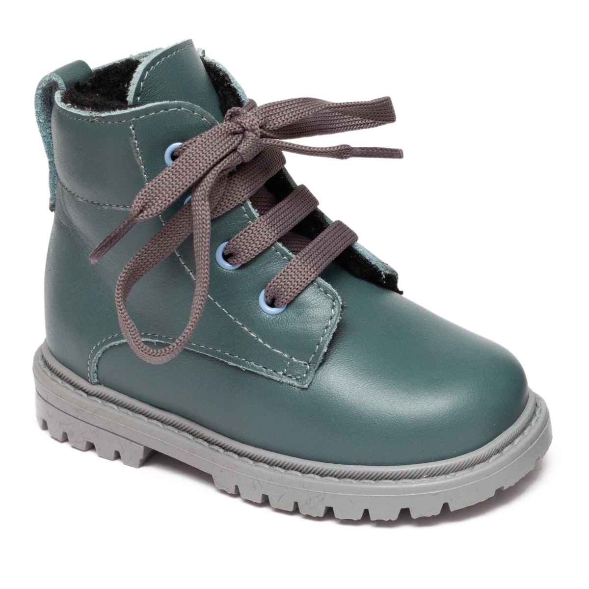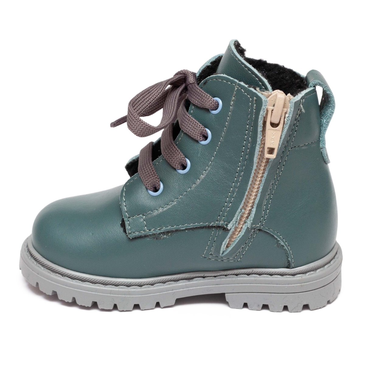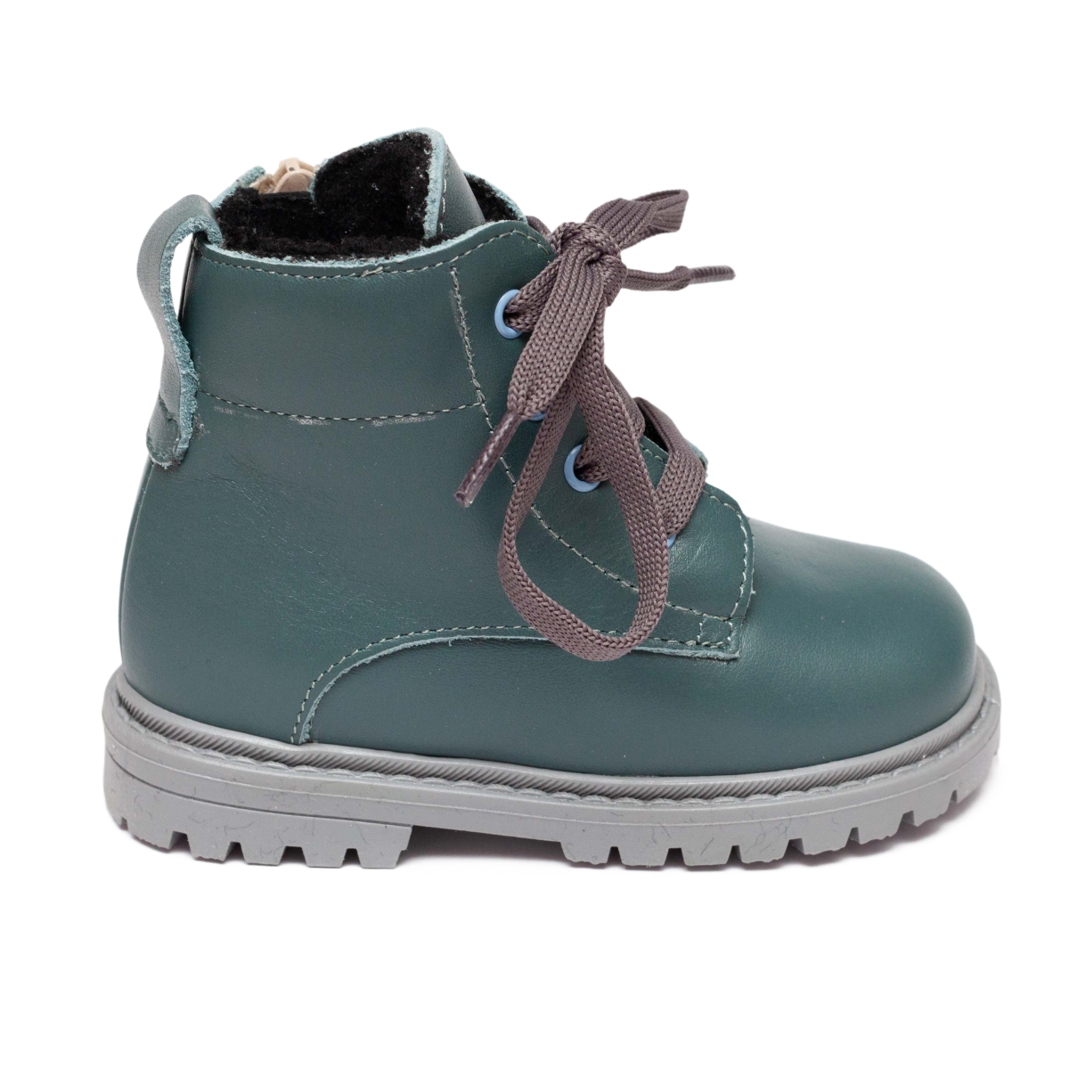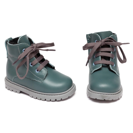 Ghete copii din piele naturala la exterior , in interior blanita naturala, si pe talpa , cu talonet .