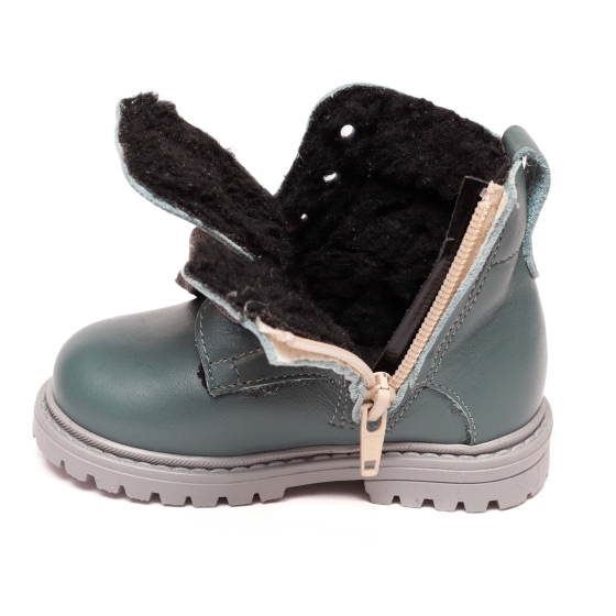 Ghete copii din piele cu blana si talonet AV413 petrol TG 19-30