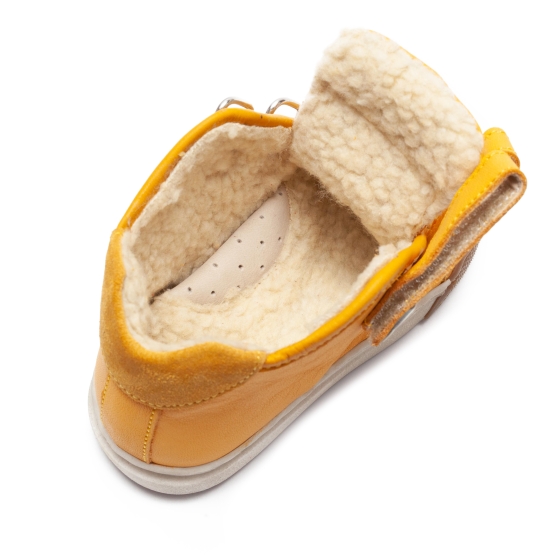 Ghete copii din piele cu talonet si blana Seby mustar galben 18-29