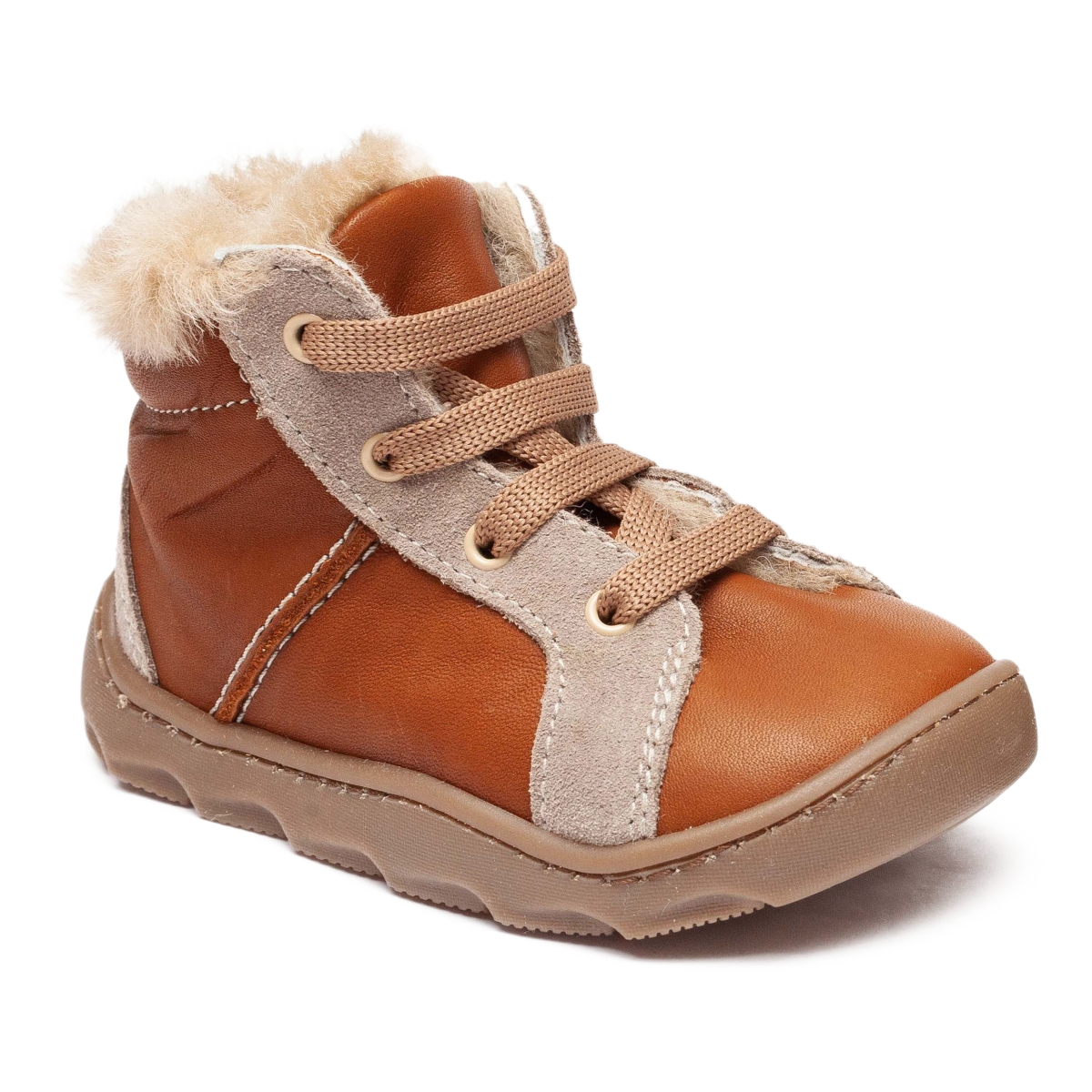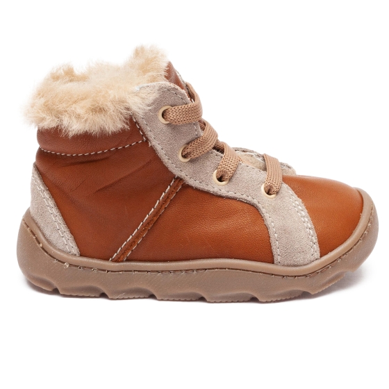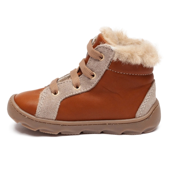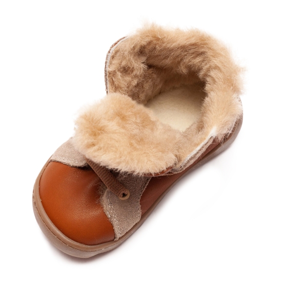 Ghete copii flexibile din piele cu blana naturala AV658 cafe TB 18-26