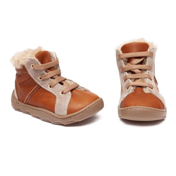 Ghete copii din piele naturala la exterior , in interior blanita naturala si pe talpa .