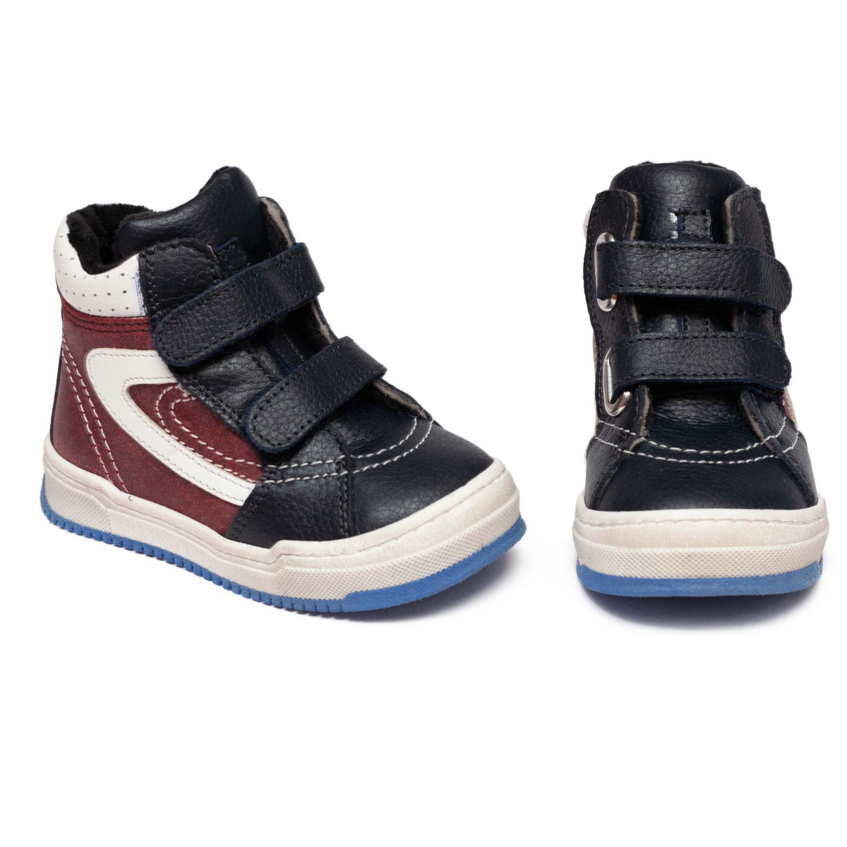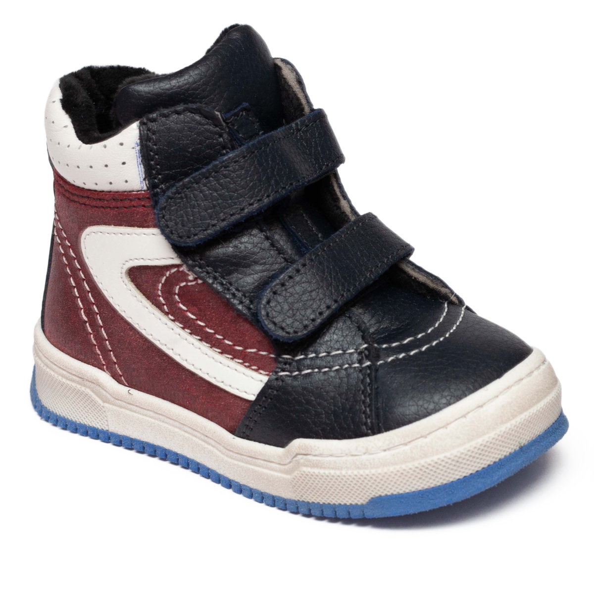 Ghete cu blana copii cu talonet din piele 755 blu bordo alb 19-35
