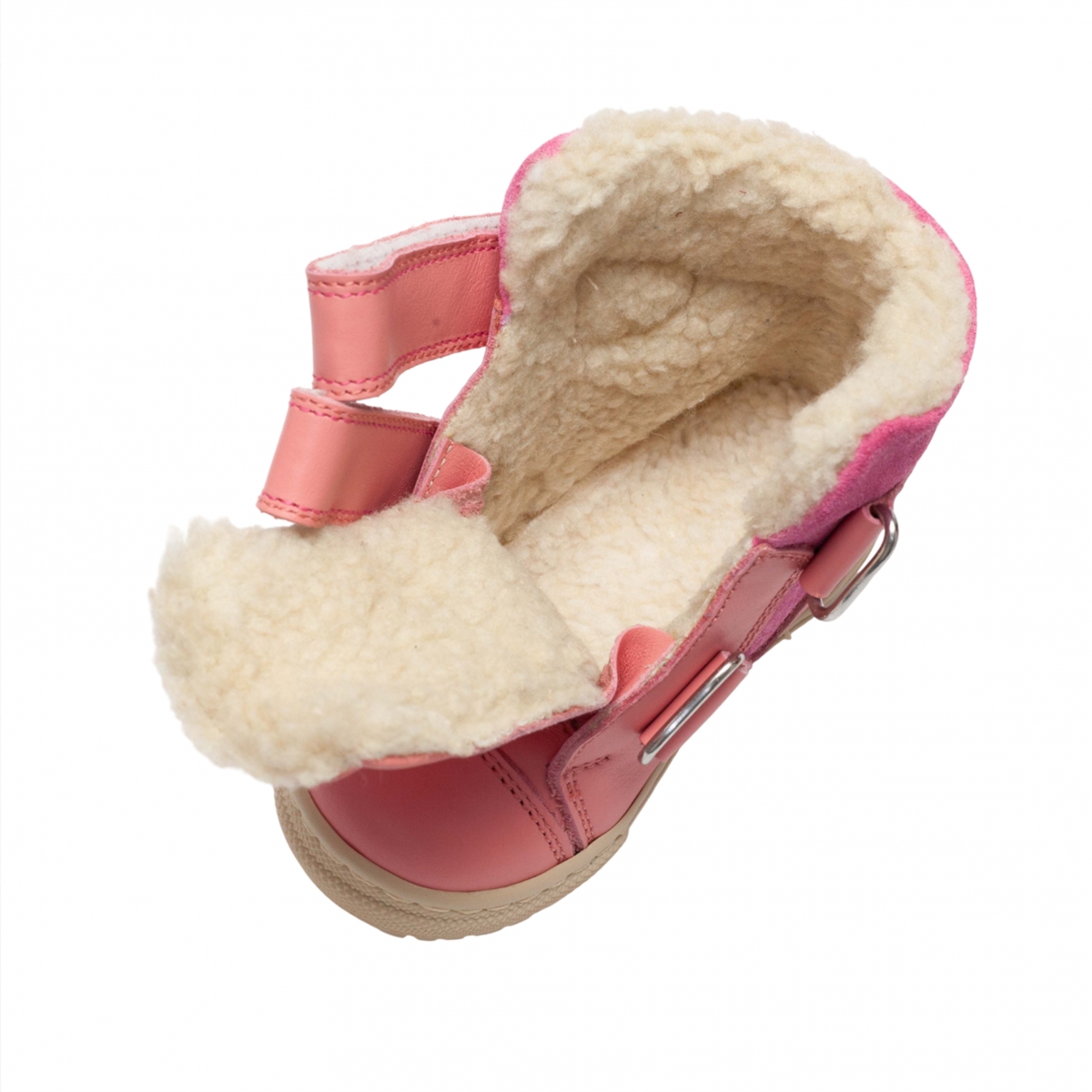 Ghete copii din piele naturala exterior , blanita la interior si pe talpa , cu talonet .