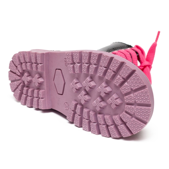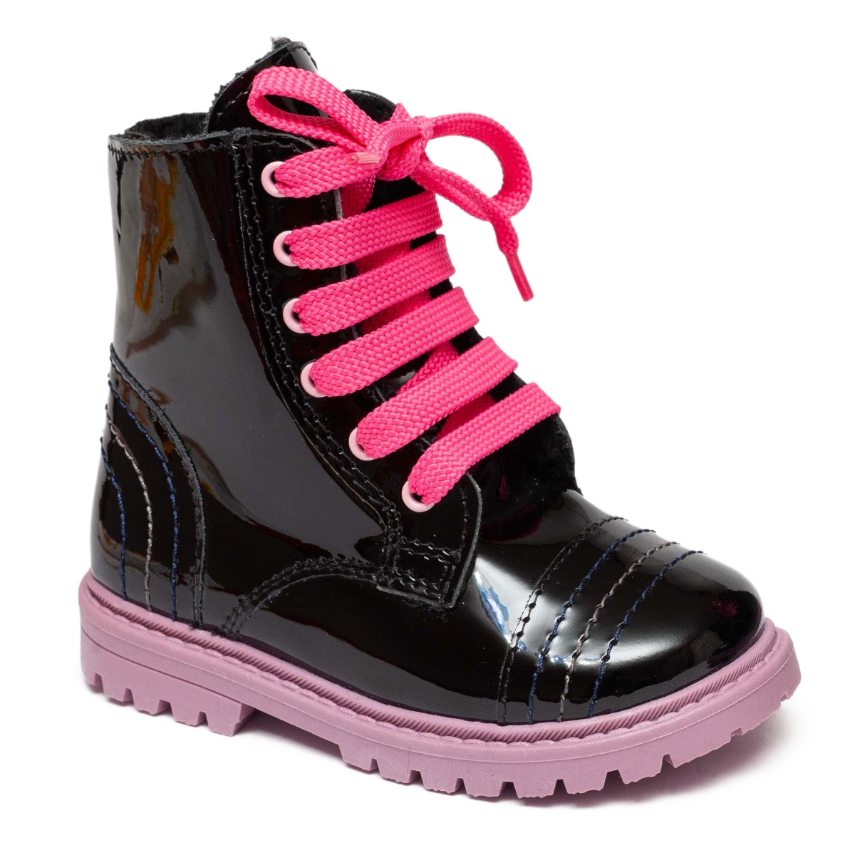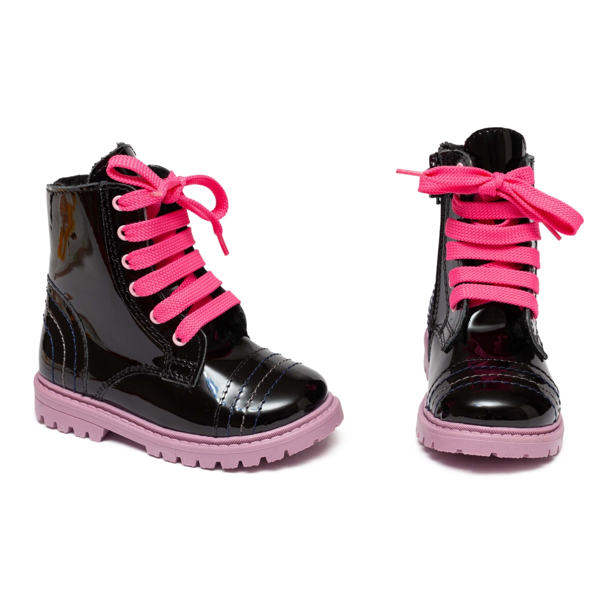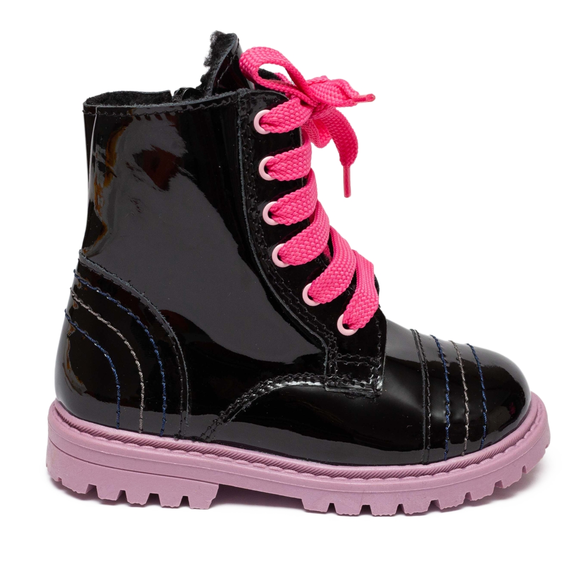 Ghete fete cu blana din piele si talonet Kity negru lac fuxia 20-30