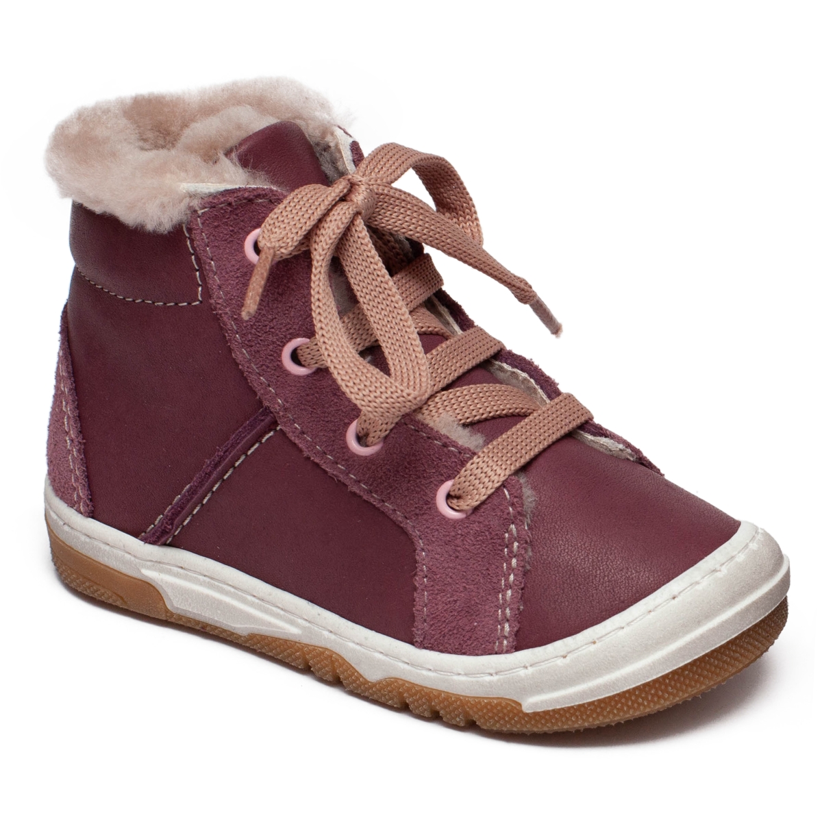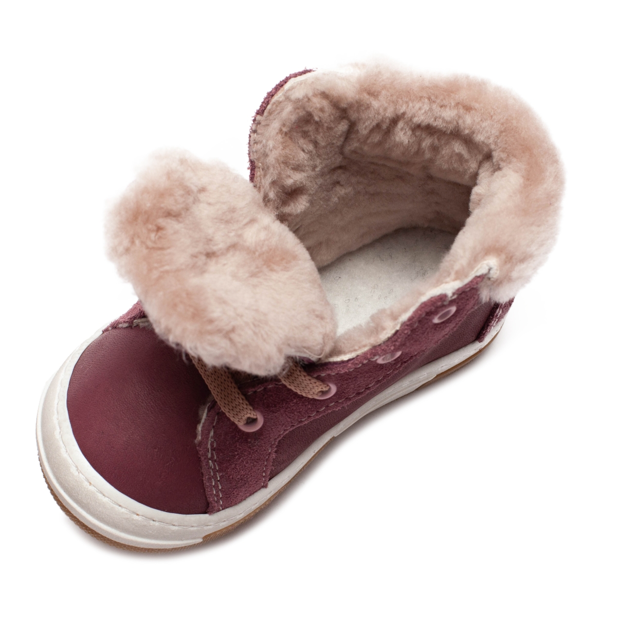 Ghete fete flexibile din piele cu blana naturala AV658 bordo 18-26