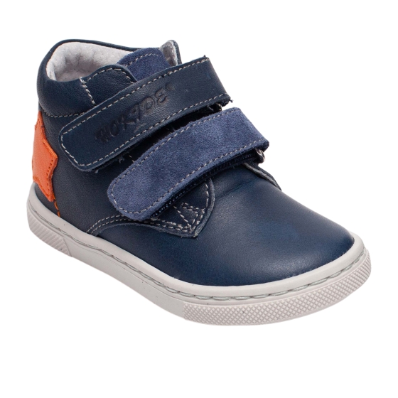 Ghete pentru băieți din piele naturală cu talonet ortopedic, ghete Hokide 380 blu. Încălțăminte confortabilă și flexibilă, ideală pentru susținerea corectă a piciorului. Sistem cu arici pentru încălțare rapidă. Mărimi 19–25.