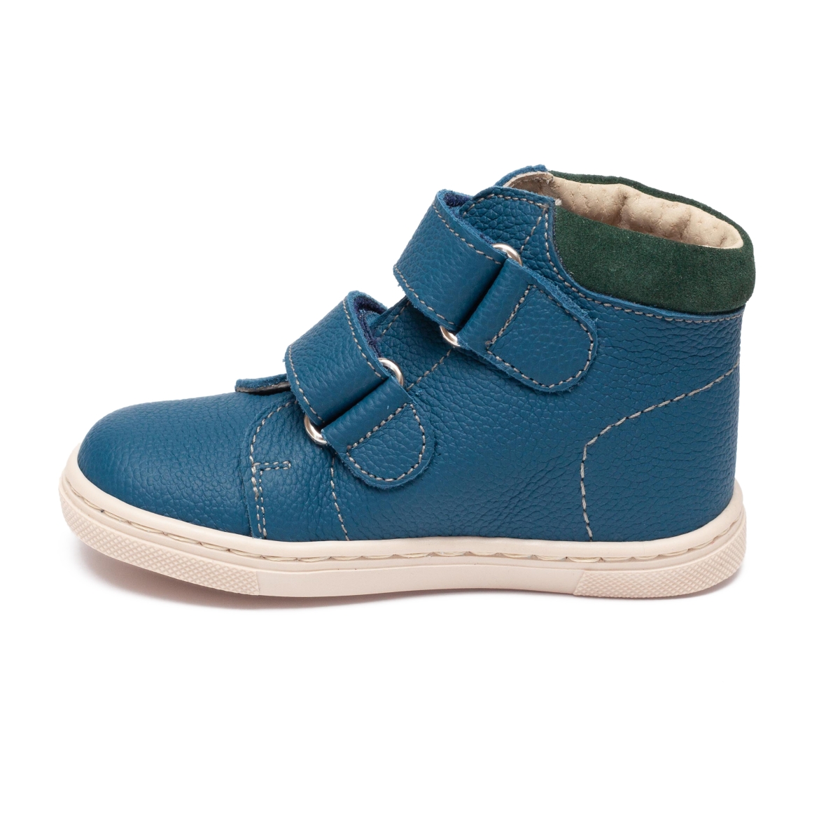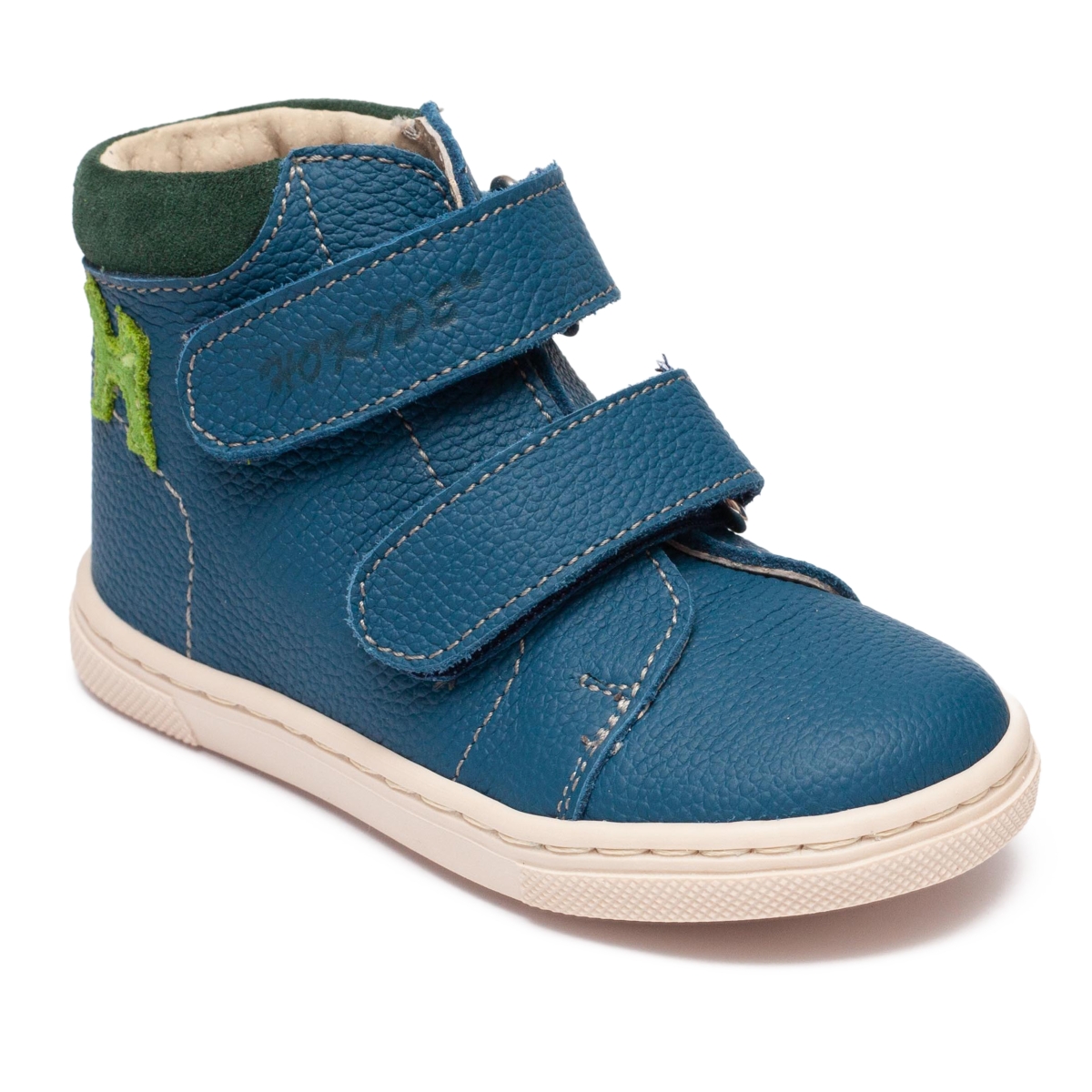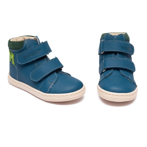 Ghetele pentru băieți Hokide 417 albastru verde, realizate integral din piele naturală (interior și exterior), sunt alegerea ideală pentru primii pași, grădiniță și joaca zilnică. Concepute pentru confort, flexibilitate și dezvoltare sănătoasă, aceste ghetuțe oferă susținere optimă fără să limiteze mișcarea naturală a piciorului.
